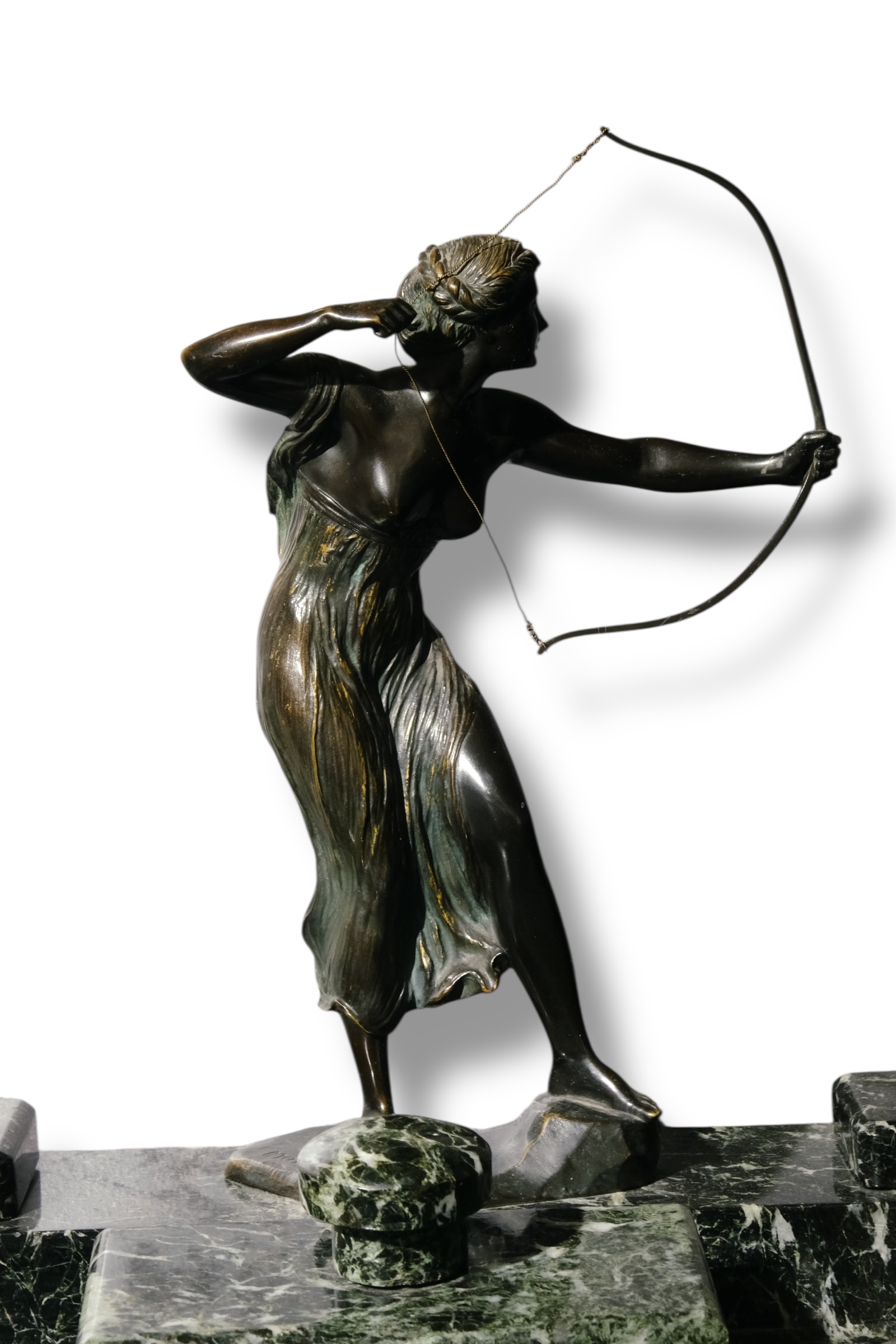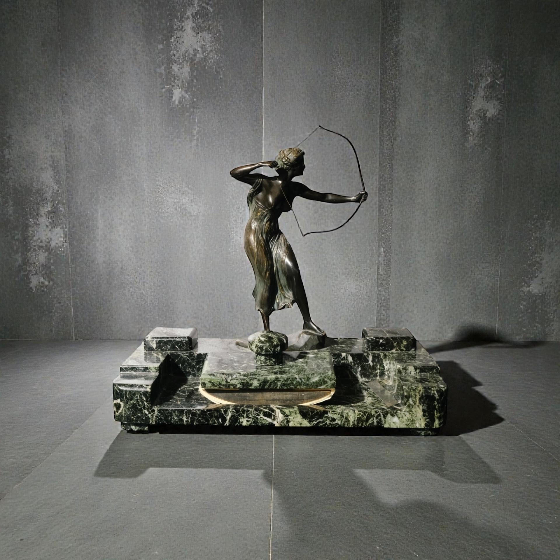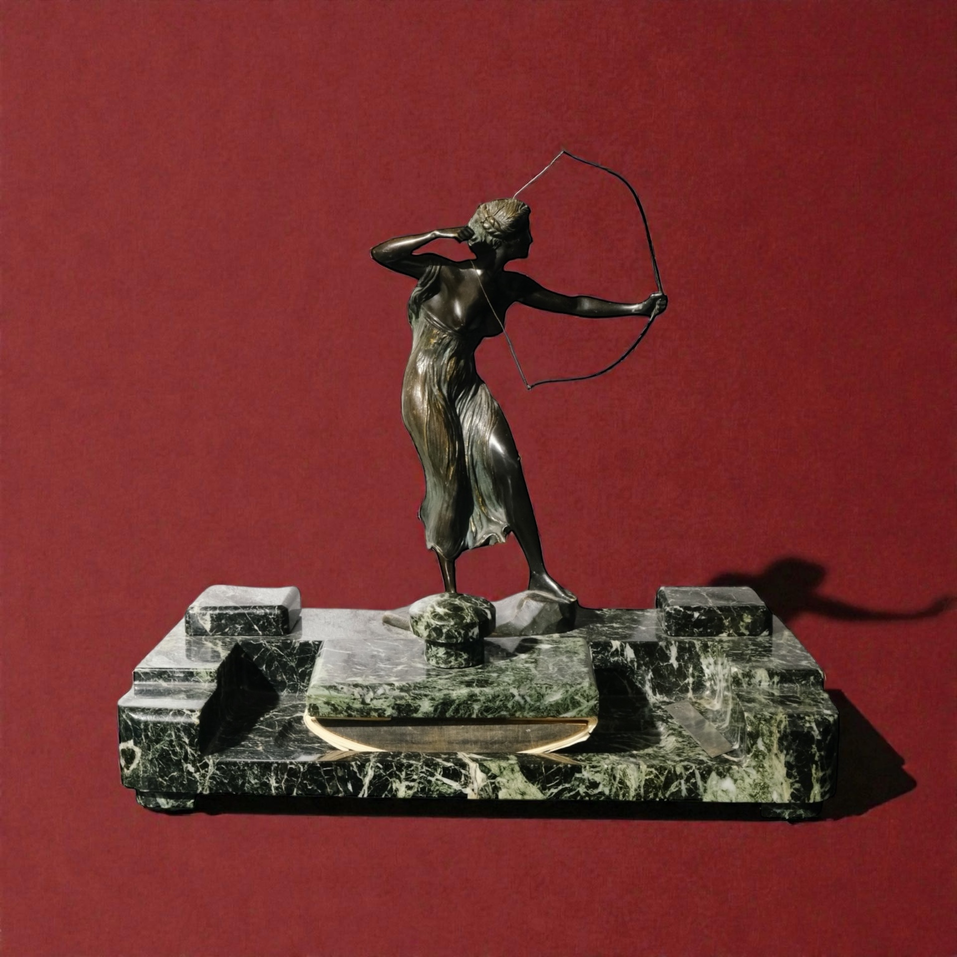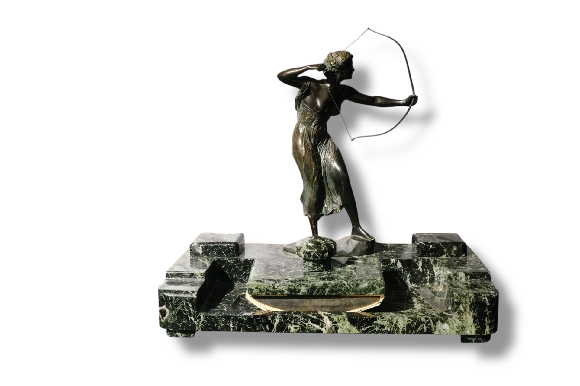Calimara marmura cu statueta Diana,semnata Schlipstein marmura si statueta Morin.Inaltime 42 cm, latime 42x23cm