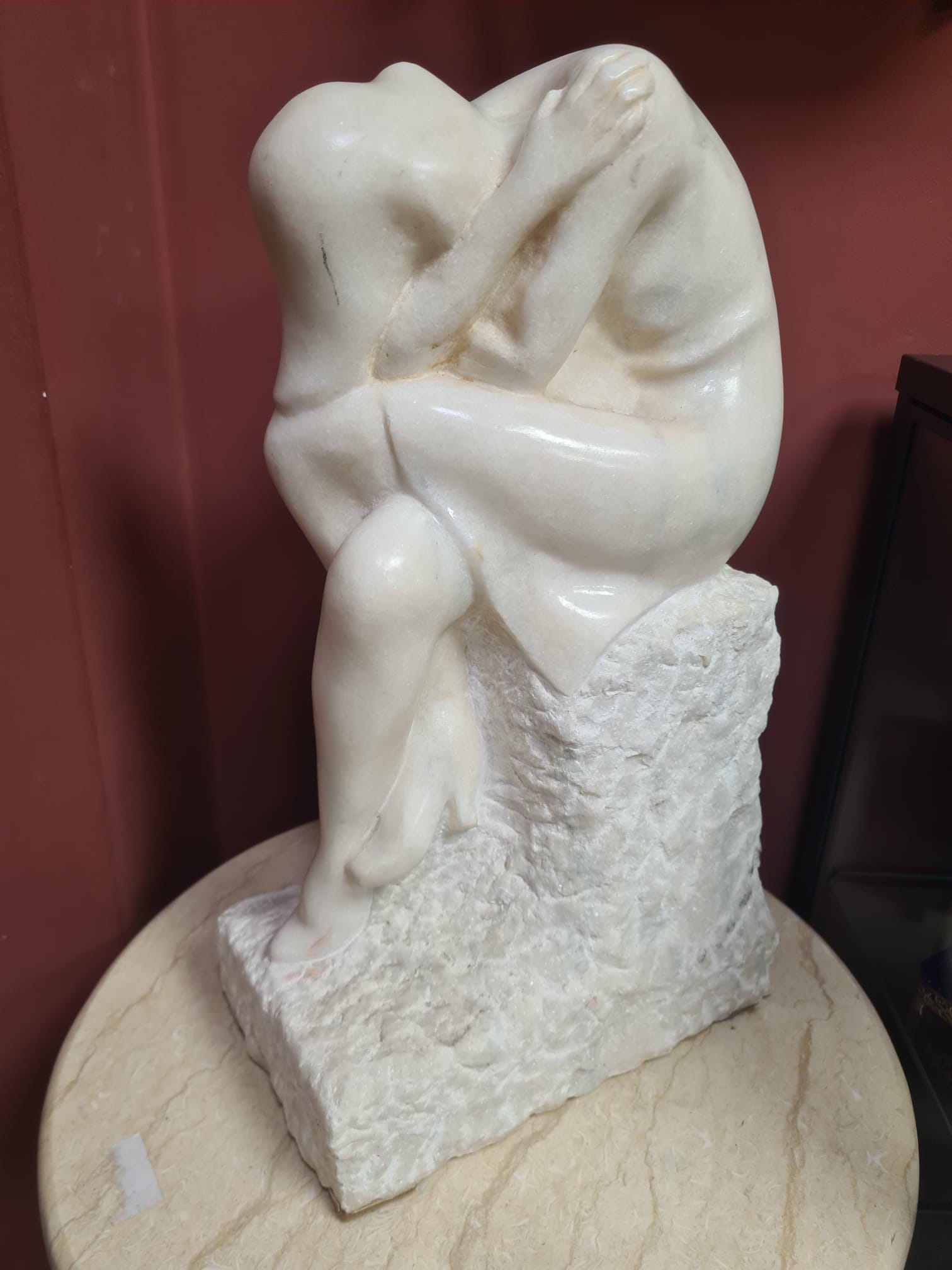 Sculptura din marmura Nud , Cornel Medrea, dimensiuni: 42 x 24 cm.