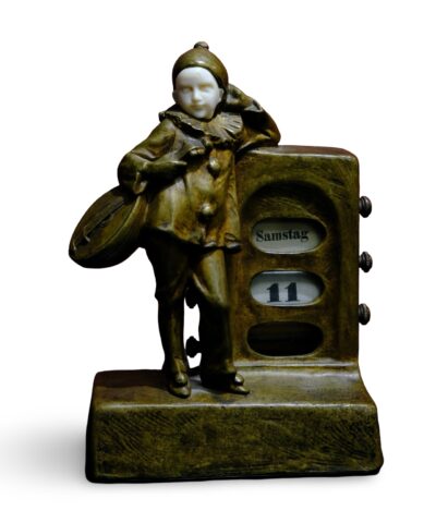Sculptura din bronz patinat, calendar ajustabil, semnata, Peter Tereszczuk 1875- 1963, Viena